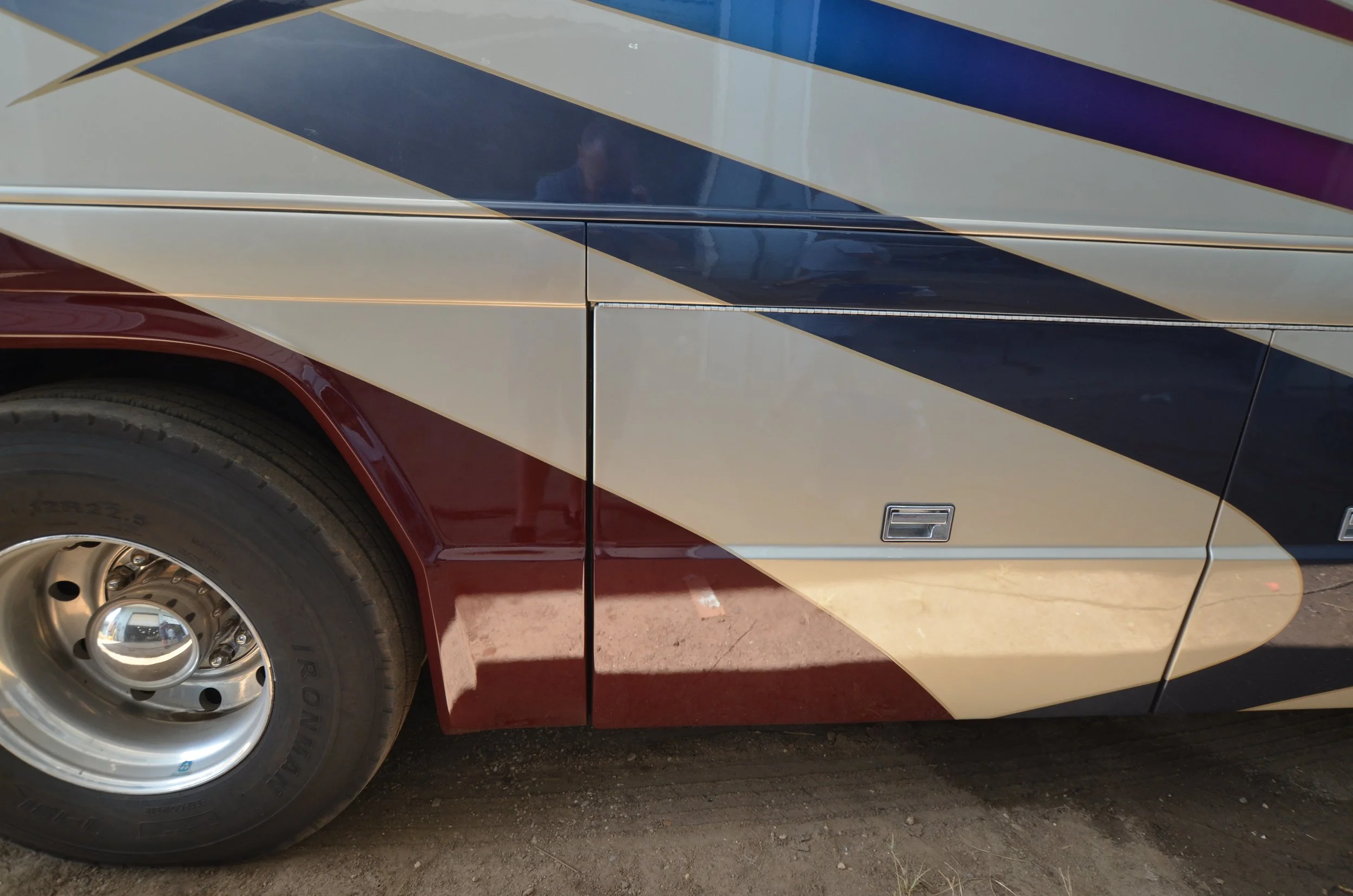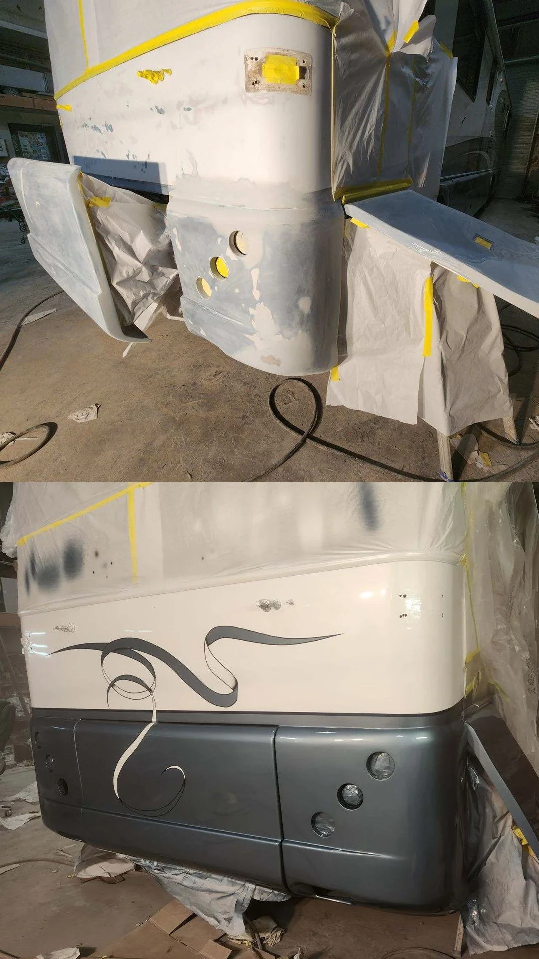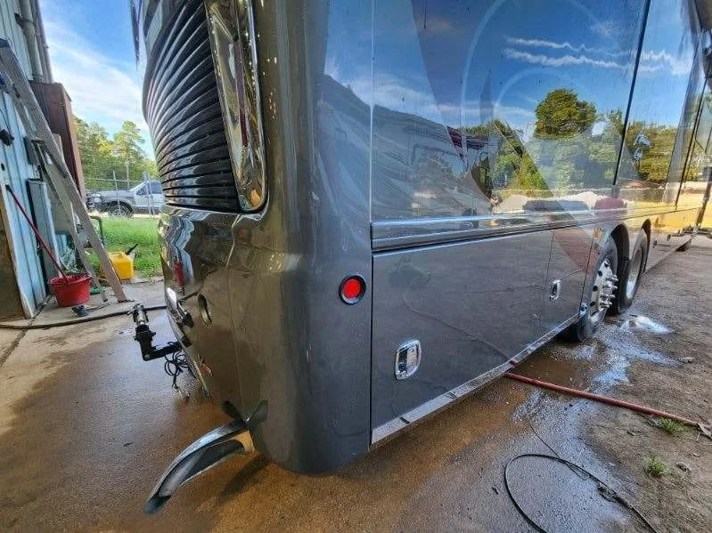Before and after on the repainting of a bus conversion project that was done in tandem with Motorhomes of Texas